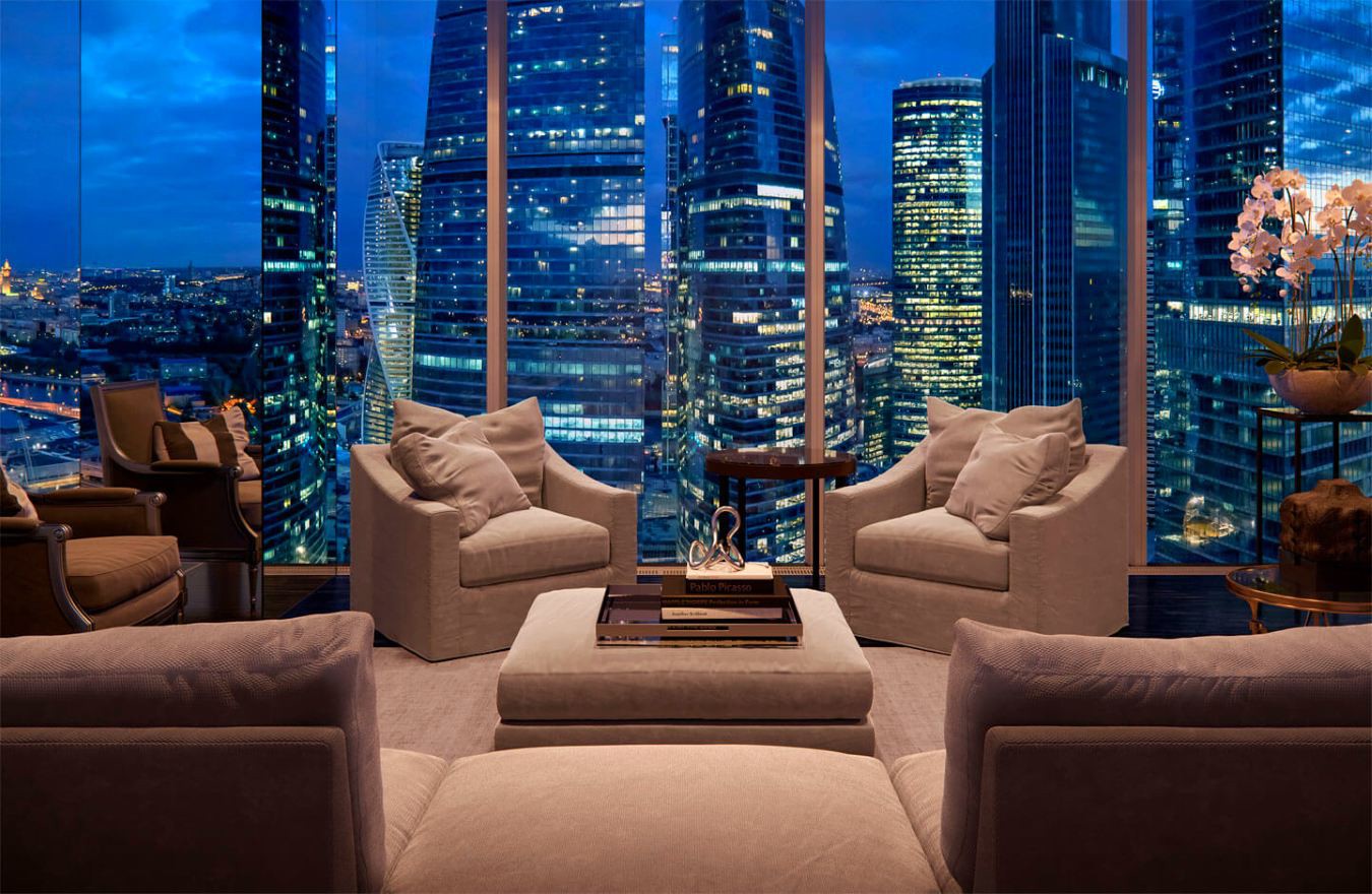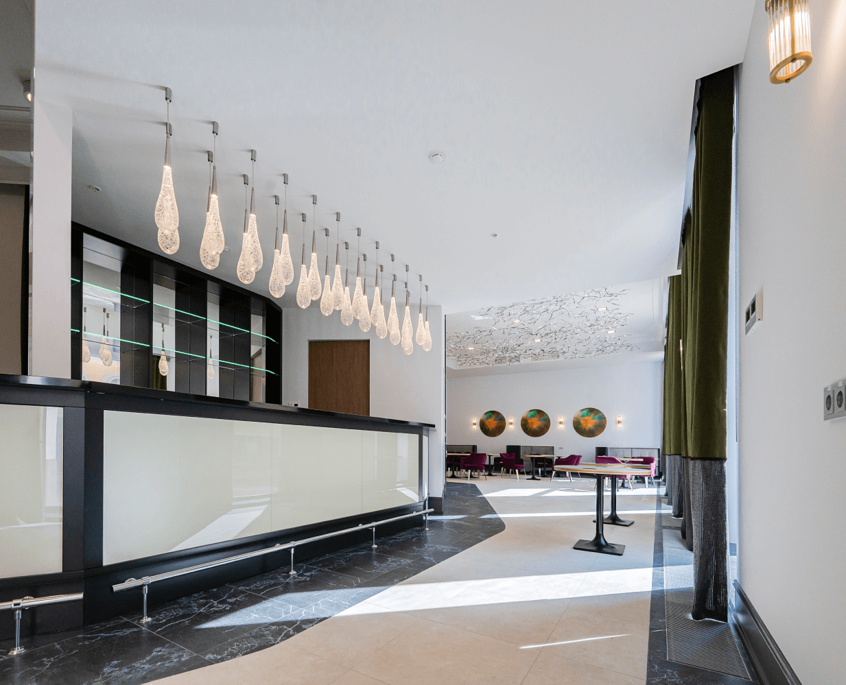 - пространства лобби в роскошной дизайнерской отделке из ценных пород дерева и натурального камня