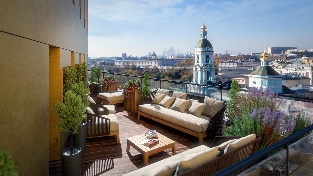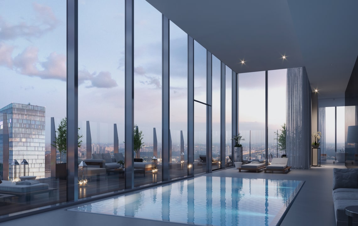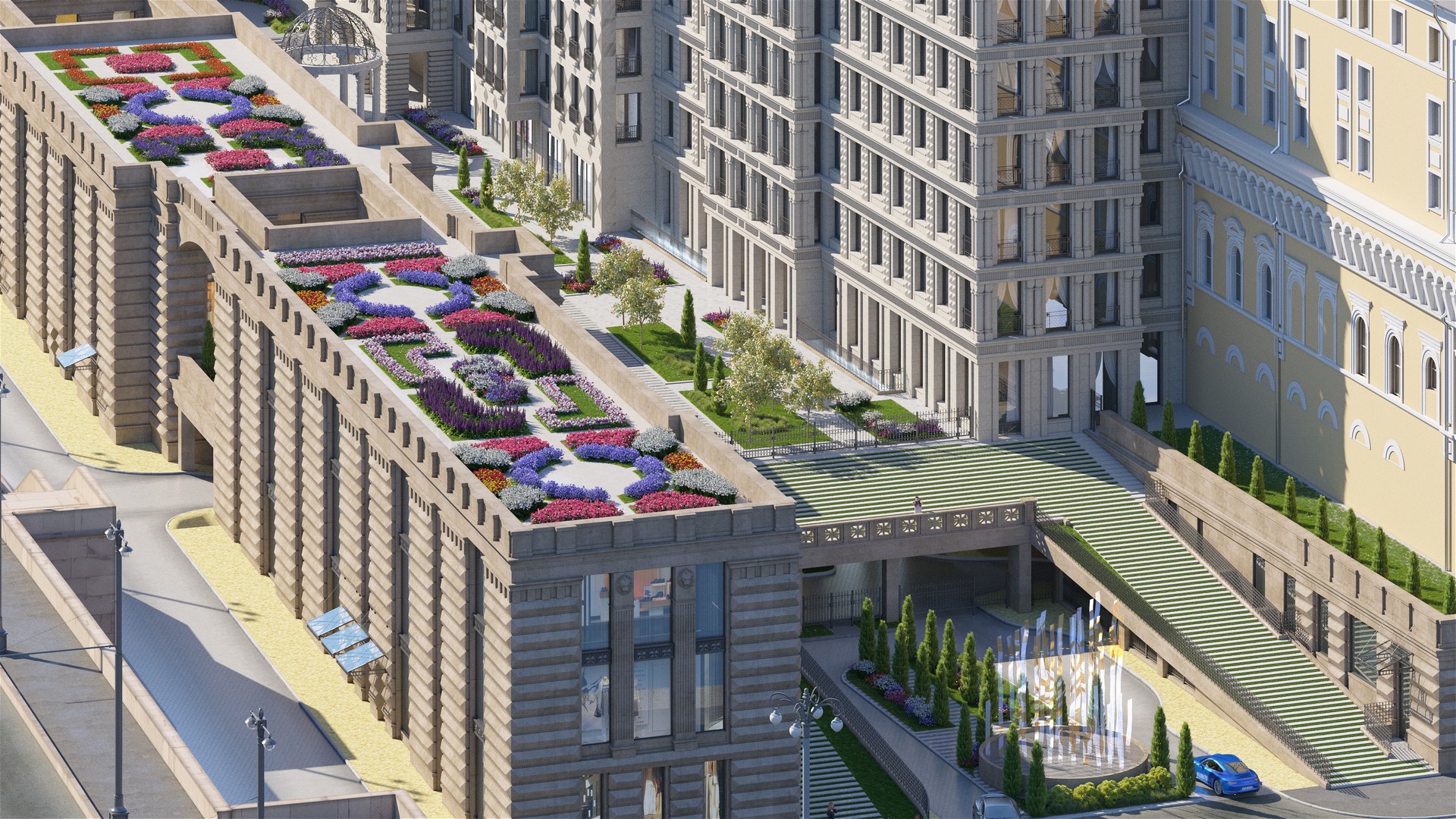 - собственная инфраструктура: спа-комплекс, кинотеатр, фитнес-клуб, кинозал, виртуальный гольф-зал, частный парк с открытым бассейном, расположенный на крыше 4-х этажного стилобата